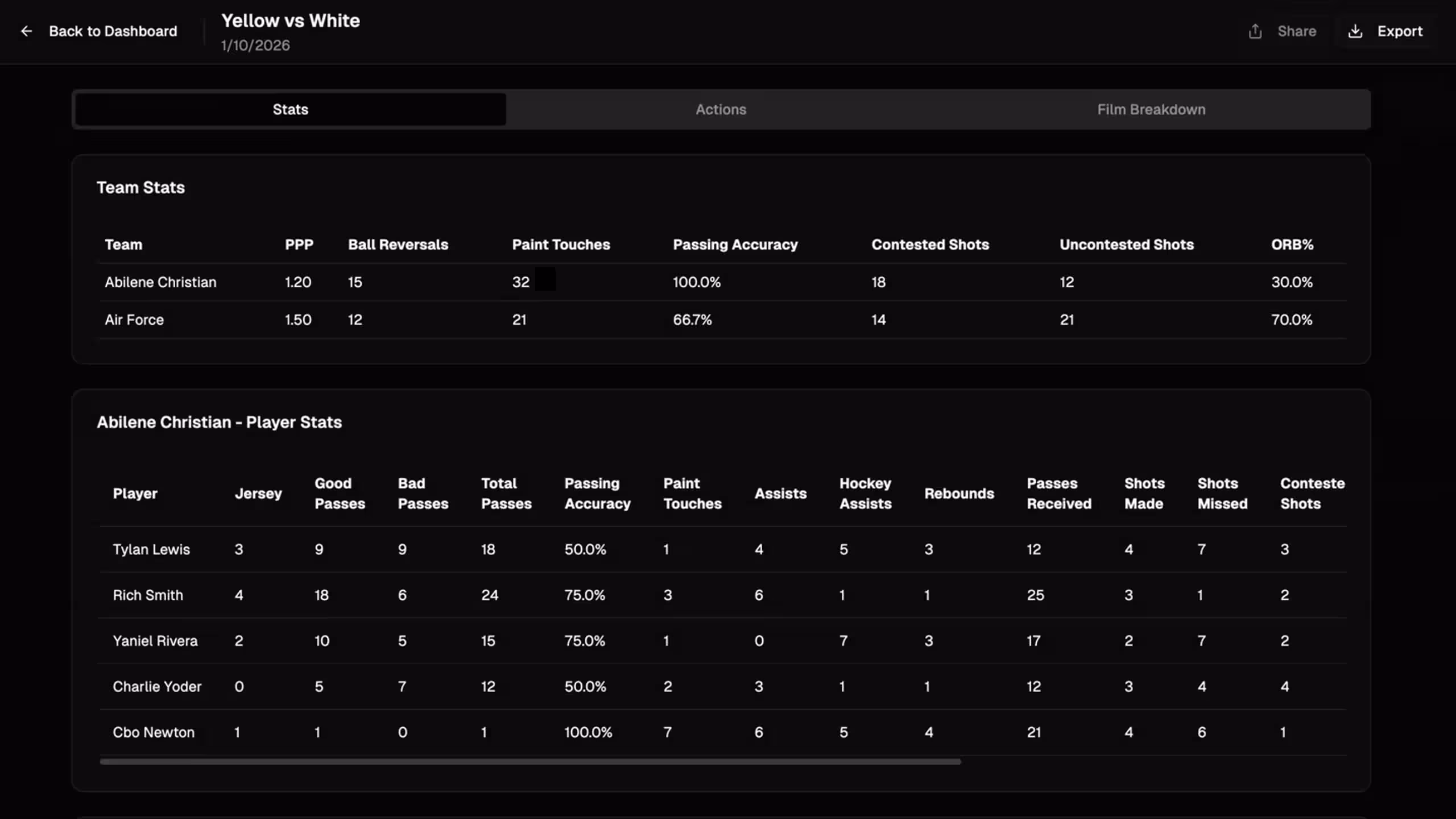 For coaches and scouts, PlayVision offers deep contextual metrics from these detections, such as analyzing passing accuracy or determining if a pass was "good" or "bad" based on where the receiving player caught the ball. For example, the system can differentiate between a pass caught easily in a shooting pocket versus one that forces a player to jump or bend down. This adds a layer of quality control to standard passing stats that is difficult for humans to capture and process manually.